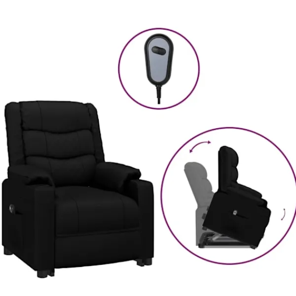 Luta dig tillbaka och koppla av i den här mycket bekväma fåtölj med uppresningshjälp! Manuell lutningsfunktion: Liggstolen är speciellt utformad med 3 liggande lägen så att du kan justera ryggstödet och fotstödet manuellt enligt din komfort.Eldriven lyftfunktion: Denna reclinerfåtölj är utrustad med en elektrisk motor för lyftfunktion. Tack vare funktionen som skjuter upp hela stolen kan du enkelt ställa dig upp utan att lägga stress på rygg och knä med en 2-knappars handkontroll.Bekväm sittupplevelse: Det tjockt vadderade sätet, ryggstödet och de breda armstöden täckta i konstläder ger en mysig och varm känsla, vilket gör att du känner dig omfamnad när du sitter. Konstläder är ett högst slitstarkt material. Den är fläckbeständig, vilket gör den enkel att rengöra med en fuktig trasa. Den släta ytan har också ett lyxigt utseende.Massiv och stabil ram: Ramen av trä och metall bidrar till en stark och stabil konstruktion. Denna fällbara fåtölj är bekväm och hållbar.