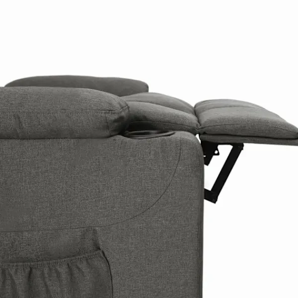 Luta dig tillbaka och koppla av i den här mycket bekväma fåtölj med uppresningshjälp! Manuell lutningsfunktion: Liggstolen är speciellt utformad med 3 liggande lägen så att du kan justera ryggstödet och fotstödet manuellt enligt din komfort.Eldriven lyftfunktion: Denna reclinerfåtölj är utrustad med en elektrisk motor för lyftfunktion. Tack vare funktionen som skjuter upp hela stolen kan du enkelt ställa dig upp utan att lägga stress på rygg och knä med en 2-knappars handkontroll.Bekväm sittupplevelse: Det tjockt vadderade sätet, ryggstödet och de breda armstöden täckta i tyg bidrar till en mysig och varm känsla, vilket gör att du känner dig omfamnad när du sitter. Tyget är slitstarkt, andas och har ett enkelt och rent utseende.Massiv och stabil ram: Ramen av trä och metall bidrar till en stark och stabil konstruktion. Denna fällbara fåtölj är bekväm och hållbar.