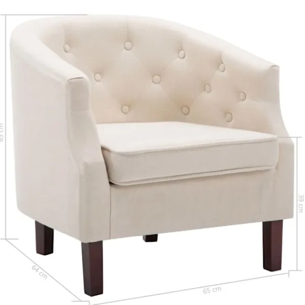 Vår eleganta fåtölj är ett perfekt val för att dekorera din inredning i sovrummet, salongen eller vardagsrummet. Denna fåtölj kommer att ge din inredning en känsla av lyx, klass och stil. De stadiga träbenen gör fåtöljen stabil och hållbar. Fåtöljen är klädd i högkvalitativt polyestertyg med tjock skumstoppning och säkerställer därför optimal sittkomfort. Knappdekorationerna och de elegant svängda armstöden bidrar till fåtöljens sofistikerade stil. Det är en perfekt plats för att titta på en film, läsa en bok eller bara koppla av! Fåtöljen är enkel att montera.
