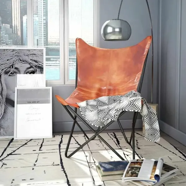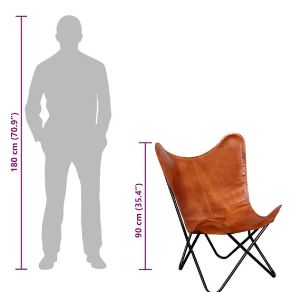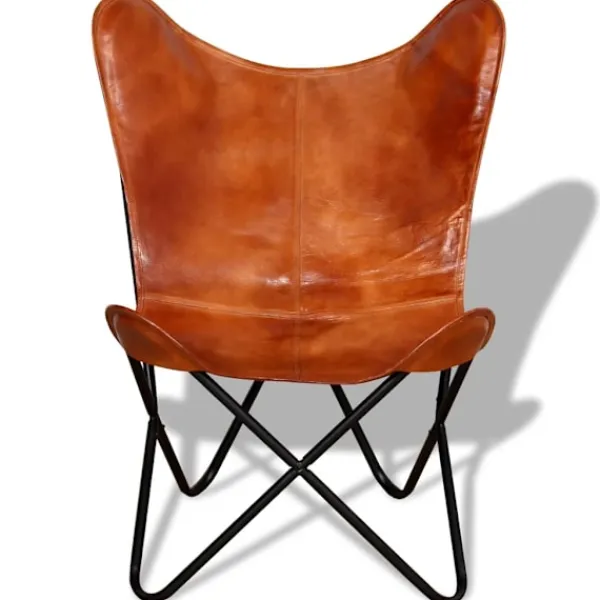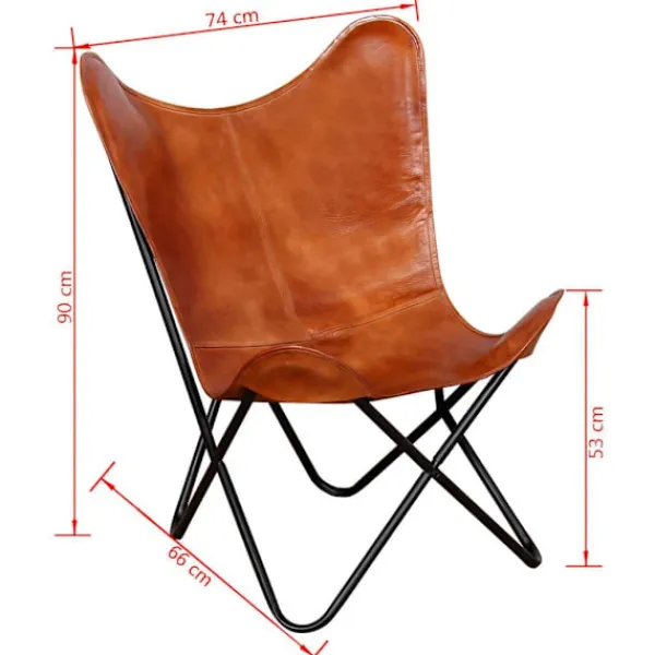 Vår fladdermusfåtölj i vintagestil av äkta läder är ergonomiskt utformad för fullständig avkoppling efter en hektisk dag. Dess ikoniska design är mycket populär och kommer att passa in i alla miljöer. Denna klassiska fladdermusfåtölj i äkta läder har en böjd rygg och sits, vilket garanterar att din kropp har tillräckligt stöd för högsta komfort. Denna fladdermusfåtölj är tillverkad i äkta läder och är slitstark samt byggd för att hålla. Fåtöljens fyra hörn är även de förstärkta med äkta läder. Den robusta pulverlackerade järnramen ger stabilitet och hållbarhet. Fåtöljen är lätt och bekväm. Var vänlig observera: Färgerna kan skifta från produkt till produkt, vilket gör varje fåtölj unik; leveransen är slumpmässig.