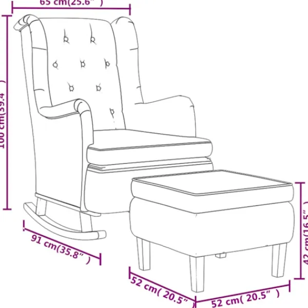 Letar du efter en fåtölj att koppla av efter en tröttsam dag? Denna bekväma vilstol med pall är ett perfekt val! Premium tyg: Reclinerfåtöljen med fotpall är tillverkad av tyg, som har ett enkelt och rent utseende och andas och är hållbart.Gungmedar: Koppla av och sitt bekvämt medan du njuter av en lugnande, lätt gungande rörelse.Bekvämt armstöd: Fåtöljens armstöd gör att dina armar kan vila bekvämt.Praktisk pall: Pallen är perfekt för att lägga upp fötterna på i slutet av dagen. Du kan också använda den som en extra plats i ditt vardagsrum eller främre ingång. Observera:Varje produkt levereras med en monteringsmanual i lådan för enkel montering.
