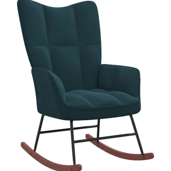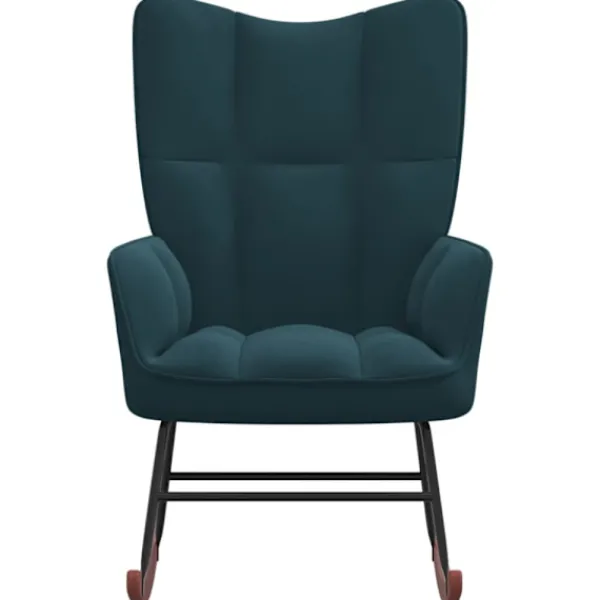 Fåtöljen är estetiskt tilltalande. Tack vare den tjockt skumfyllda klädseln i mjukt sammetstyg kan du sitta mycket bekvämt. Tack vare skenorna välter den inte lätt. Eftersom den har en ram och ben i stål, och gungskena i trä, är stolen stabil och hållbar.