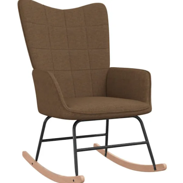 Fåtöljen har rutmönster i ryggen och är estetiskt tilltalande. Tack vare den skumfyllda klädseln i mjukt tyg kan du sitta mycket bekvämt. Tack vare skenorna välter den inte lätt. Eftersom den har en ram och ben i stål, och gungskena i trä, är stolen stabil och hållbar.
