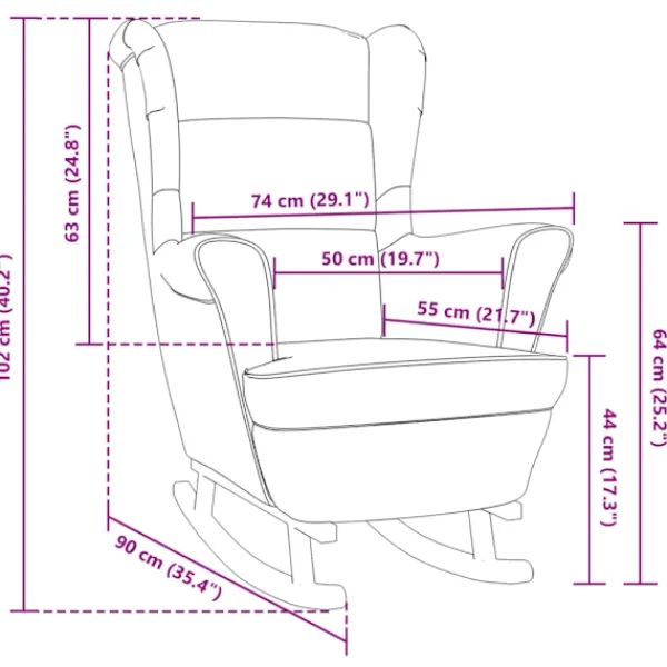 Gungfåtöljen är en härlig kombination av elegant design och funktion. Blandningen av skickligt hantverk och material gör denna fåtölj till ett måste i din heminredning. Tack vare skumfyllningen och den mjuka klädseln kan du sitta mycket bekvämt. Dessutom stöds denna vardagsrumsstol av gungben i massivt gummiträ som säkerställer extra stabilitet.