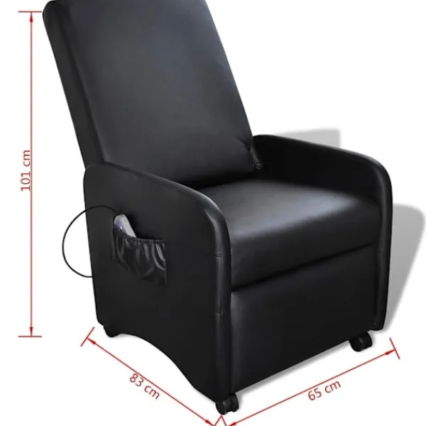 En bra massage kan återhämta dig till ett avslappnat och friskt tillstånd inom bara några minuter. Denna lyxiga massagefåtölj är väldigt bekväm och hållbar tack vare vadderad klädsel av konstläder och en stadig ram tillverkad av trä och stål. Tack vare att rygg- och fotstödet är justerbart kan du alltid hitta en bekväm position. Fåtöljen är utrustad med hjul vilket gör den lätt att förflytta. Massagefåtöljen har 5 lägen samt 8 massagepunkter för kunna lugna dina axlar och ben samt din rygg och rumpa. Värmefunktionen gör att dina spänning enklare släpper, detta resulterar i en förstärkt massage. En praktisk fjärrkontroll som kan förvaras i en sidficka är inkluderad med denna underbara massagefåtölj.