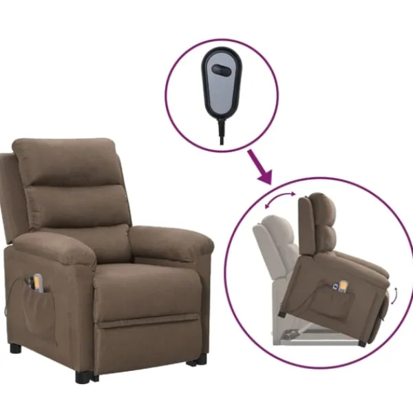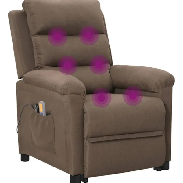 Luta dig tillbaka och koppla av i den här mycket bekväma massagefåtölj med uppresningshjälp! Manuell lutningsfunktion: Liggstolen är speciellt utformad med 3 liggande lägen så att du kan justera ryggstödet och fotstödet manuellt enligt din komfort.Eldriven lyftfunktion: Denna reclinerfåtölj är utrustad med en elektrisk motor för lyftfunktion. Tack vare funktionen som skjuter upp hela stolen kan du enkelt ställa dig upp utan att lägga stress på rygg och knä med en 2-knappars handkontroll.Vibration: De 6 massagepunkterna låter dig uppleva en bättre riktad massage. Kontrollen låter dig välja olika massageprogram. Massagefunktionen drivs av USB-kontakten, men den certifierade 5V USB-strömkällan ingår inte.Bekväm sittupplevelse: Det tjockt vadderade sätet, ryggstödet och de breda armstöden täckta i tyg bidrar till en mysig och varm känsla, vilket gör att du känner dig omfamnad när du sitter. Tyget är slitstarkt, andas och har ett enkelt och rent utseende.Massiv och stabil ram: Ramen av trä och metall bidrar till en stark och stabil konstruktion. Denna fällbara fåtölj är bekväm och hållbar.