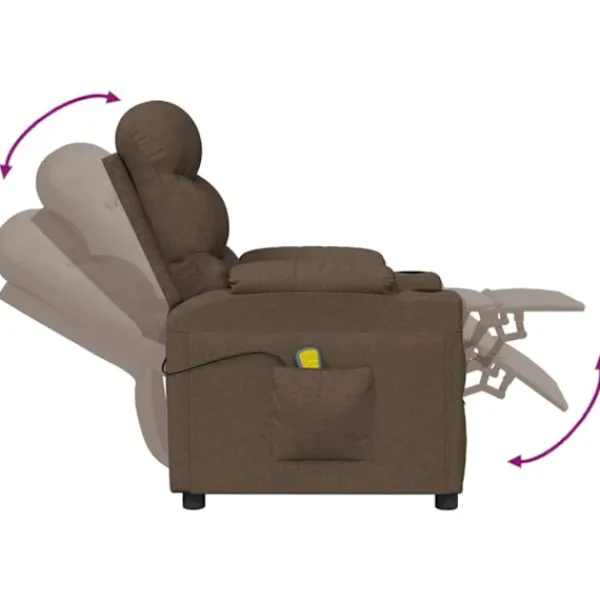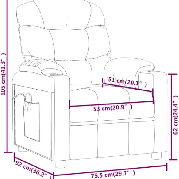 Luta dig tillbaka och koppla av i denna mycket bekväma massagefåtölj! Manuell lutningsfunktion: Liggstolen är speciellt utformad med 3 liggande lägen så att du kan justera ryggstödet och fotstödet manuellt enligt din komfort.Vibration: De 6 massagepunkterna låter dig uppleva en bättre riktad massage. Kontrollen låter dig välja olika massageprogram. Massagefunktionen drivs av USB-kontakten, men den certifierade 5V USB-strömkällan ingår inte.Bekväm sittupplevelse: Det tjockt vadderade sätet, ryggstödet och de breda armstöden täckta i tyg bidrar till en mysig och varm känsla, vilket gör att du känner dig omfamnad när du sitter. Tyget är slitstarkt, andas och har ett enkelt och rent utseende.Massiv och stabil ram: Ramen av trä och metall bidrar till en stark och stabil konstruktion. Denna fällbara fåtölj är bekväm och hållbar.