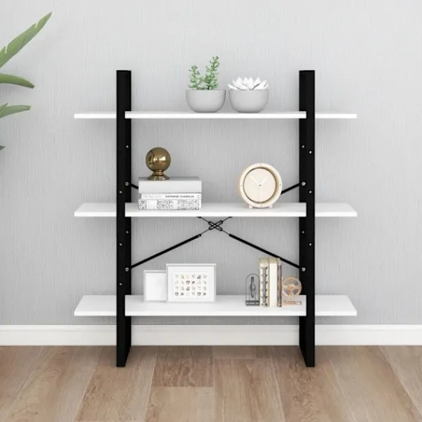 Denna bokhylla kan smälta in i din heminredning och utstrålar en modern och industriell stil. Denna bokhylla är tillverkad i konstruerat trä och metall, vilket säkerställer dess stabilitet, hållbarhet och långvariga service. Den har 3 hyllplan med gott om förvaringsutrymme för att förvara böcker, tidskrifter och andra dekorativa föremål. Bokhyllan torkas enkelt av med en fuktig trasa.