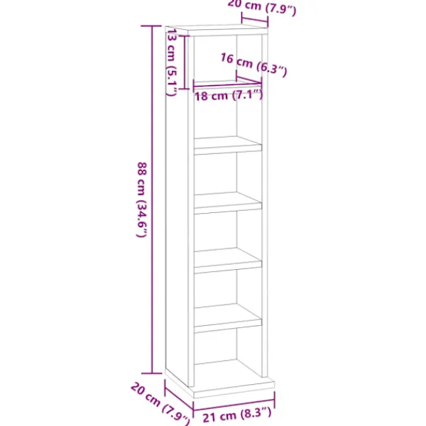 Förvara alla dina CD skivor på en säker plats med denna rymliga CD-hylla. Den är snygg, elegant och perfekt för att organisera din musiksamling. Dess sex öppna fack har inte bara gott om utrymme för dina skivor, den är också ideal för att använda för förvaring av alla tillbehör till din samling. Förvaringsskåpet är tillverkat av starkt konstruerat trä och är extremt robust och hållbart. Dessutom kan det fungera som ett arkivskåp på kontoret, eller som ett sovrumsskåp i sovrummet. CD-hyllan är lätt att rengöra och montera. Denna hylla är en utmärkt lösning för att hålla ditt hem organiserat!