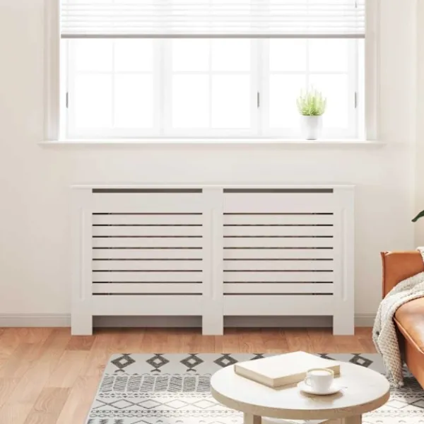 Detta elementskydd blir en praktisk och dekorativ detalj i ditt vardagsrum. Det är utformat för att ge ditt element en dekorativ funktion och ytterligare hyllutrymme för fotoramar, böcker, prydnadssaker, etc. Det stadiga och hållbara elementskyddet är tillverkat i högkvalitativ MDF och har en modern lamelldesign som passar alla typer av inredningar. Monteringen är väldigt enkel.