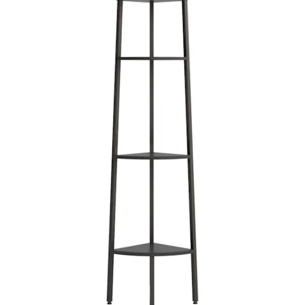 Skapa ett extra förvaringsutrymme på begränsad yta med denna 4-planshylla för hörn! Stark stålkonstruktion: Förvaringshyllan har en stark stålram som säkerställer robusthet och stabilitet.Gott om förvaringsutrymme: Bokhyllan tar lite plats samtidigt som den har gott om utrymme för dina böcker, växter, tavelramar och diverse saker.Bred tillämpning: Den praktiska hyllan passar perfekt för ditt hem och kontor, inklusive ditt vardagsrum, badrum, sovrum, balkong etc. VARNING:För att förhindra att den välter måste denna produkt användas tillsammans med det medföljande väggfästet.Observera:Varje produkt levereras med en monteringsmanual i lådan för enkel montering.
