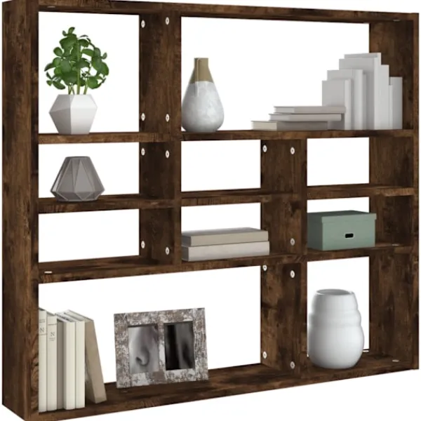 Maximera ditt utrymme och förvandla din vägg till en snygg detalj med denna vägghylla! Robust material: Det konstruerade träet är av exceptionell kvalitet med slät yta och är också starkt, stabilt och fuktbeständigt.Rymligt förvaringsutrymme: Med 10 fack blir denna väggmonterade hylla den perfekta platsen att förvara böcker, utmärkelser, samlarföremål, prydnadssaker osv.Dekorativ funktion: Den eleganta hyllan kan förvandla en tom vägg till en unik inredningsdetalj och blir rummets blickfång. Observera:Skruv(ar) och plugg(ar) för insidan av väggen ingår ej. Sök och använd skruv(ar) och plugg(ar) som passar dina väggar. Om du är osäker, sök professionell rådgivning. Läs och följ varje steg i instruktionerna noggrant.