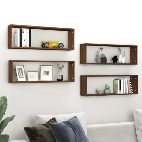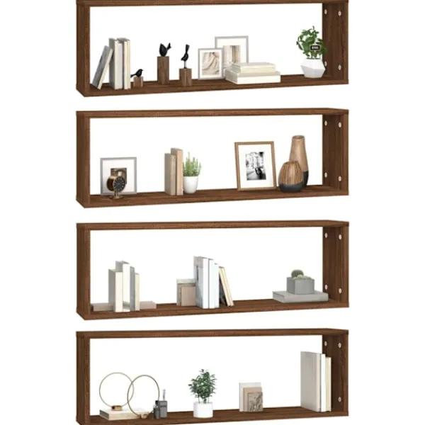 Dessa trendiga kubhyllor blir ett praktiskt och snyggt tillskott i inredningen. Slitstarkt material: Dessa flytande hyllor är tillverkade i konstruerat trä. Det konstruerade träet är av exceptionell kvalitet med slät yta och är också starkt, stabilt och fuktbeständigt.Bra förvaring: Dessa vägghyllor har öppna fack och blir en perfekt plats att förvara och visa upp böcker, utmärkelser, samlarobjekt, prydnader mm.Dekorativ funktion: Dessa hyllor är lämpliga för de flesta av dina dekorationer och förvandlar en tom vägg till en designfunktion!Lätt att rengöra: Dessa hyllor är lätt att rengöra med en fuktig trasa. Observera:Skruv(ar) och plugg(ar) för insidan av väggen ingår ej. Sök och använd skruv(ar) och plugg(ar) som passar dina väggar. Om du är osäker, sök professionell rådgivning. Läs och följ varje steg i instruktionerna noggrant.Varje produkt levereras med en monteringsmanual i lådan för enkel montering.