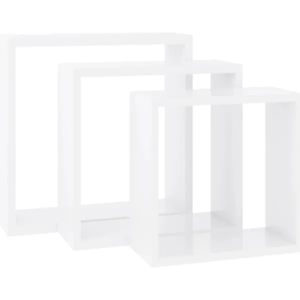 Denna uppsättning med 3 kubformade vägghyllor blir ett blickfång i ditt rum. Dessa kubformade hyllor är tillverkade i MDF som är stabilt och hållbart. Dessa hörnhyllor har ett osynligt monteringssystem och är enkla att montera. De är en perfekt plats att ställa föremål som priser, böcker, samlarsaker, prydnader, osv. Hörnhyllorna passar de flesta inredningar och förvandlar enkelt en tom vägg till en inredningsdetalj!