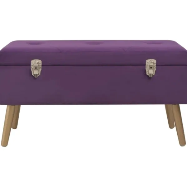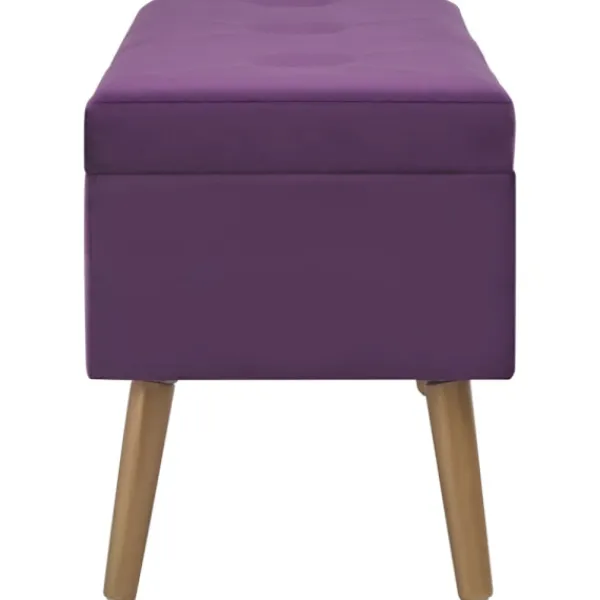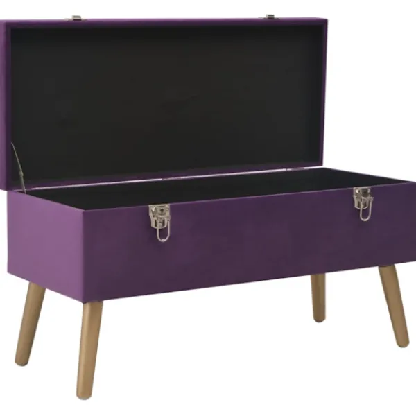 Den lila sammetsklädseln är mjuk och mycket mysig samtidigt som den blir en färgglad detalj i din inredning. Den har ett inbyggt förvaringsutrymme med extra plats för att förvara dina prylar. De guldfärgade träbenen bidrar dessutom till hallbänkens stabilitet och hållbarhet. Bänken blir en elegant dekoration i din inredning och en oumbärlig del av rummet.