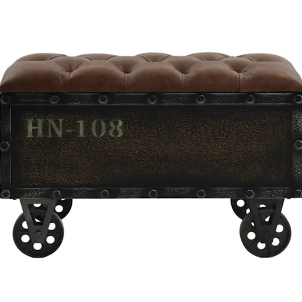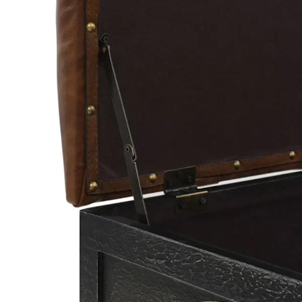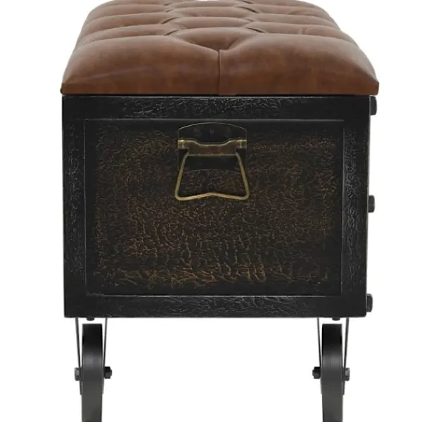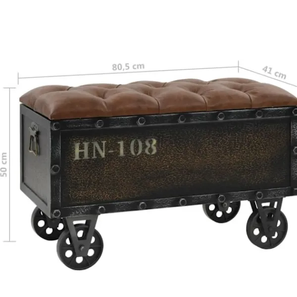 Denna slående förvaringsbänk i form av en resekoffert blir ett unikt tillägg i din inredning med sin spektakulära vintage design. Den kan även användas som en puff eller en förvaringsbox. Den bekväma bänken är tillverkad i massivt granträ, MDF och den vadderade sitsen är klädd i konstläder. Den har gott om utrymme för att hålla många olika föremål utom synhåll men inom räckhåll. Tack vare sina robusta handtag och 4 hjul, kan förvaringsboxen enkelt flyttas runt i ditt rum. Monteringen av denna produkt är lättsam.