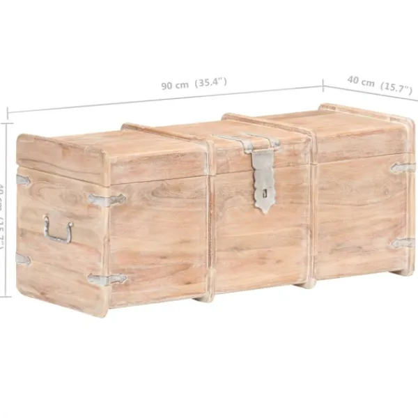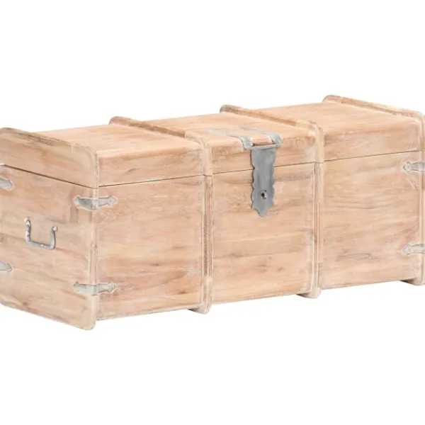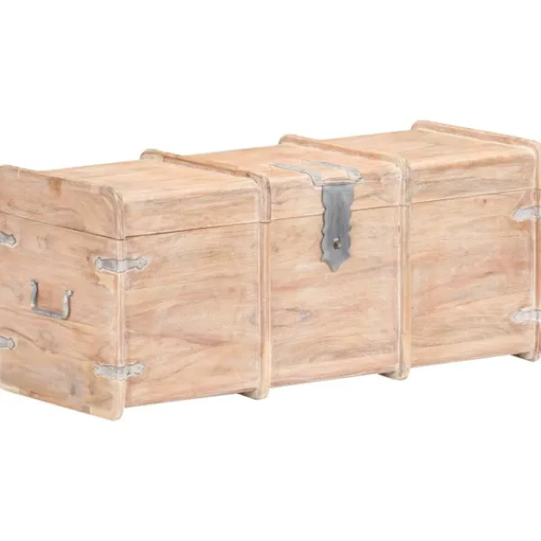 Förvaringskistan i trä blir en enkel detalj i din heminredning och ger dig plats att förvara dina saker såsom kläder, tidningar, böcker, leksaker, verktyg och annat. Förvaringskistan är tillverkad i massivt akaciaträ, vilket gör den stabil och hållbar. Den har ett lås på framsidan och två handtag på sidan som gör den enkel att lyfta. Förvaringslådan med platt ovansida kan även användas som hallbänk. Hantverket och de vackra träådringarna gör varje möbel unik och något olik nästa. OBS: Färger och ådringar varierar från möbel till möbel, vilket gör varje produkt unik. Leveransen är slumpartad. Leveransen är slumpmässig, vilket säkerställer varje produkts exklusivitet och individualitet.