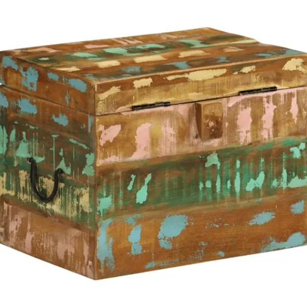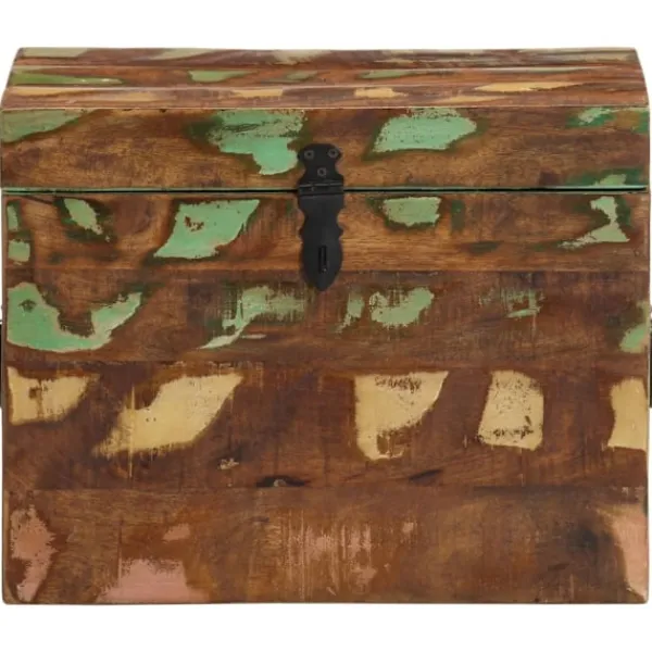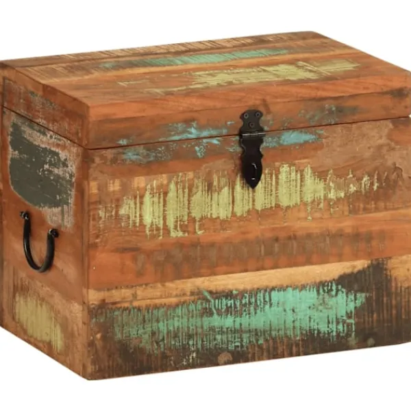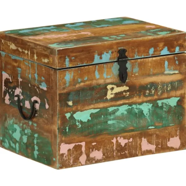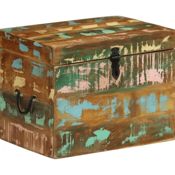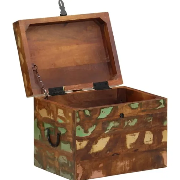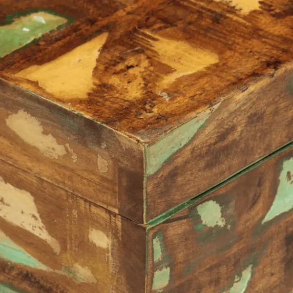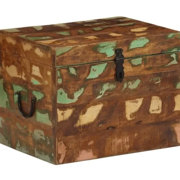 Denna förvaringslåda i antikstil kommer att utgöra ett tidlöst inslag i ditt hem, bidrar med rikligt förvaringsutrymme och kommer säkerligen hjälpa dig att hålla ordning på dina ägodelar. Förvaringskistan är tillverkad i återvunnet trä vilket betyder att varje möbel är unik och skiljer sig något från de andra. Möbler tillverkade av återvunnet trä har karaktärsdrag från olika träslag såsom sheesham, teak, palisander, mangoträ, akacia, ädelträ, etc. Återvunnet trä är massivt, stadigt, hållbart och vackert. Spikhål och synlig ådring ger möbeln en historia och bjuder in ännu en generation att genomsyra den med sin alldeles egen sådan. Den här möbeln kommer att visa att du förstår koncept såsom resursskydd, miljöskydd och hållbar utveckling. Det rena hantverket tillför en spektakulär exotisk känsla. Varje process för återkombinering, polering, målning och vaxning är omsorgsfullt utförd. Denna antika förvaringskista kommer bli ett utmärkt inslag i ditt hem! OBS! Färger kan variera på möblerna, vilket gör varje möbel unik. Leveransen är slumpartad.