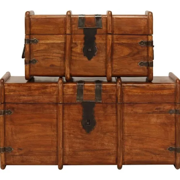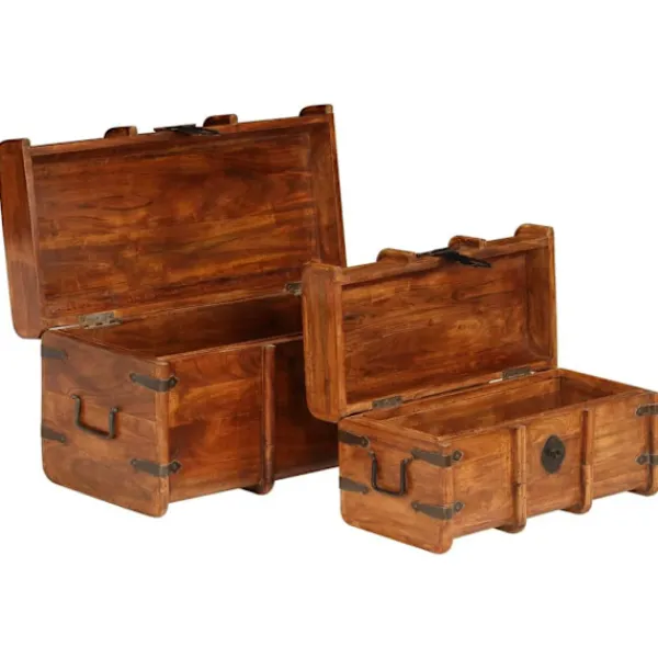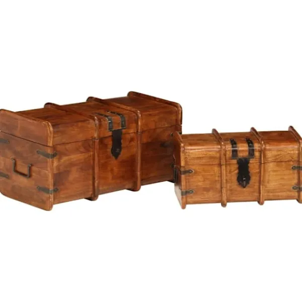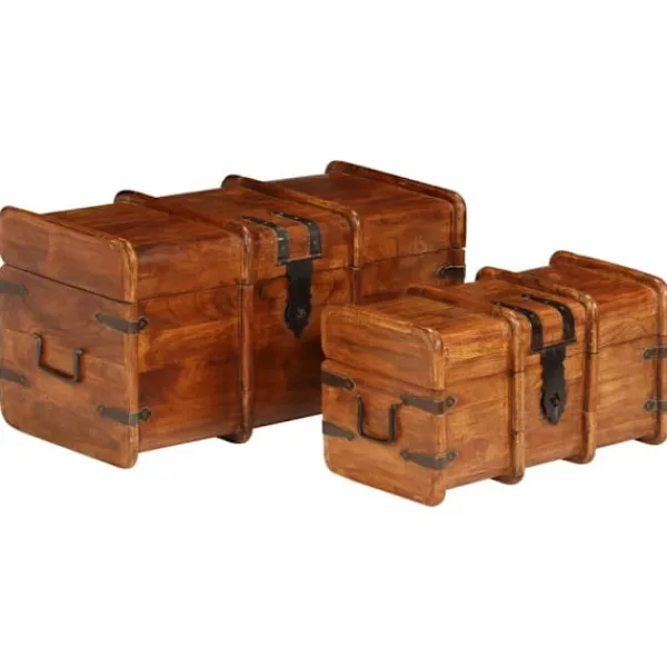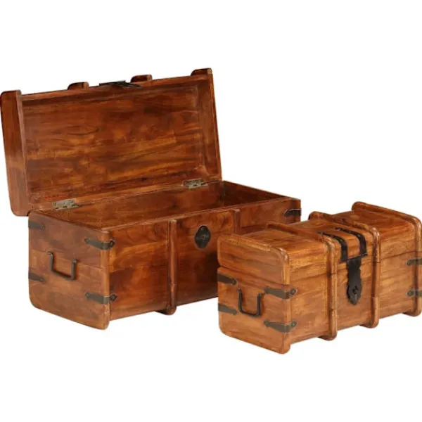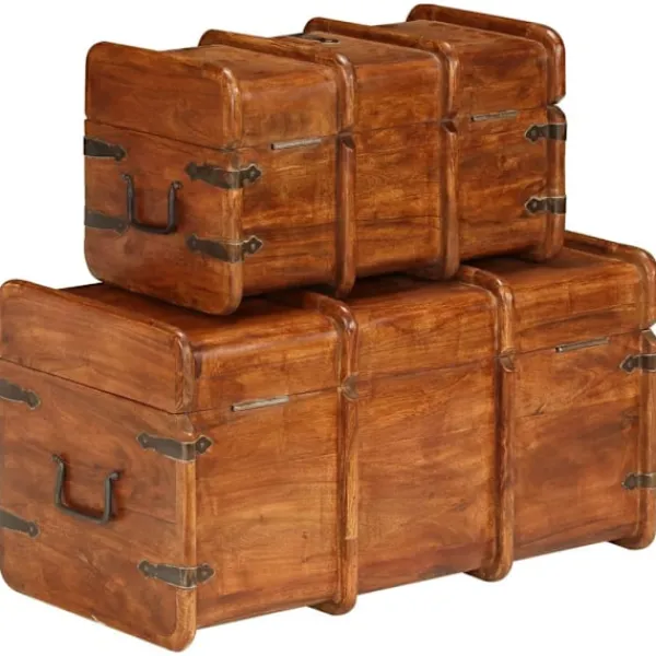 Denna förvaringskista i trä med retro stil blir ett tidlöst tillägg i din vardagsrumsinredning! Kistorna är tillverkade i massivt akacieträ med honungsfinish och är mycket hållbara och stabila. Akaciaträ är ett tufft lövträ med vackra ådringar som kommer att hålla i många år. Det är också känt för sina rika fibrer. Kistorna har gott om lagringsutrymme för att hålla dina hushållsartiklar snyggt organiserade. Trästrukturen ger uppsättningen ett vintage utseende. Varje steg i tillverkningsprocessen görs med stor omsorg, vare sig det är polering, målning eller lackning. Detta set är redan monterat, ingen montering krävs. Observera: Träets färger och ådringar varierar från möbel till möbel vilket gör varje möbel unik och något annorlunda från de andra. Leveransen är slumpmässig.