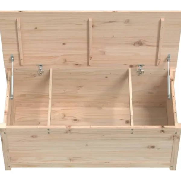 Denna förvaringslåda hjälper till att förenkla organisering i hemmet, minska och dölja mycket av röran i ditt hem. Massivt furuträ: Massivt furuträ är ett vackert naturmaterial. Furuträ har raka fibrer, och knutarna ger materialet sin rustika utstrålning.Gott om förvaringsutrymme: Lådan har gott om förvaringsutrymme för att hålla mattor, kuddar och andra dagliga nödvändigheter välorganiserade.Hydrauliskt gaslyftlock: Du kan enkelt öppna och stänga locket med den hydrauliska gaslyften.Robust och stabil ram: Träramen säkerställer robusthet och stabilitet. Observera:Varje produkt levereras med en monteringsmanual i lådan för enkel montering.