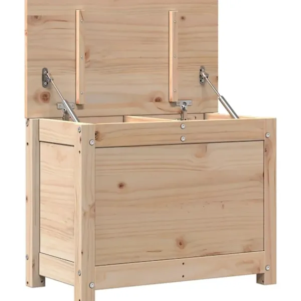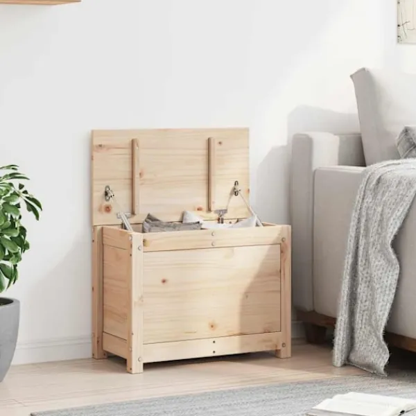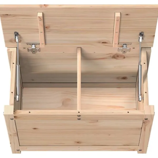 Denna förvaringslåda hjälper till att förenkla organisering i hemmet, minska och dölja mycket av röran i ditt hem. Massivt furuträ: Massivt furuträ är ett vackert naturmaterial. Furuträ har raka fibrer, och knutarna ger materialet sin rustika utstrålning.Gott om förvaringsutrymme: Lådan har gott om förvaringsutrymme för att hålla mattor, kuddar och andra dagliga nödvändigheter välorganiserade.Hydrauliskt gaslyftlock: Du kan enkelt öppna och stänga locket med den hydrauliska gaslyften.Robust och stabil ram: Träramen säkerställer robusthet och stabilitet. Observera:Varje produkt levereras med en monteringsmanual i lådan för enkel montering.