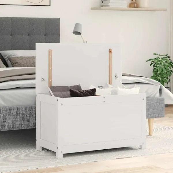 Denna förvaringslåda hjälper till att förenkla organisering i hemmet, minska och dölja mycket av röran i ditt hem. Massivt furuträ: Massivt furuträ är ett vackert naturmaterial. Furuträ har raka fibrer, och knutarna ger materialet sin rustika utstrålning.Gott om förvaringsutrymme: Lådan har gott om förvaringsutrymme för att hålla mattor, kuddar och andra dagliga nödvändigheter välorganiserade.Hydrauliskt gaslyftlock: Du kan enkelt öppna och stänga locket med den hydrauliska gaslyften.Robust och stabil ram: Träramen säkerställer robusthet och stabilitet. Observera:Varje produkt levereras med en monteringsmanual i lådan för enkel montering.
