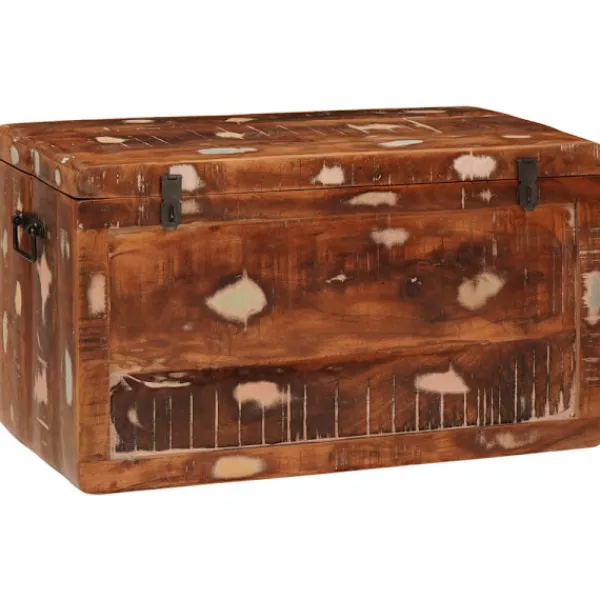 Denna rustika förvaringskista har en härlig rektangulär form och är perfekt för att ge en smart förvaringslösning till ditt sovrum. Den visar upp en naturlig, robust skönhet och kombinerar funktion med stil. Den varma bruna färgen bidrar till en mysig atmosfär, medan den rymliga insidan ger plats för att förvara allt från kläder till diverse grejer, så den passar perfekt för den som gillar både ordning och stil.