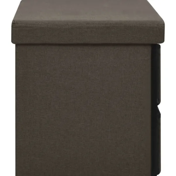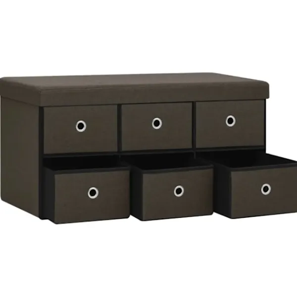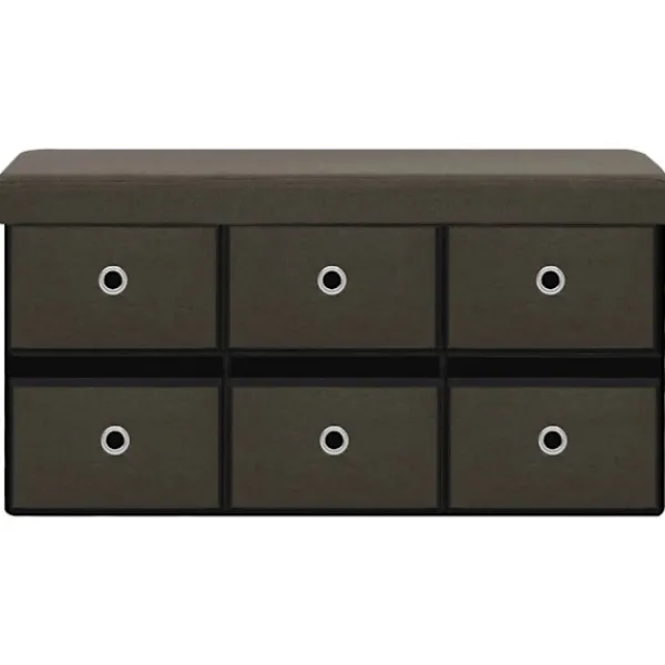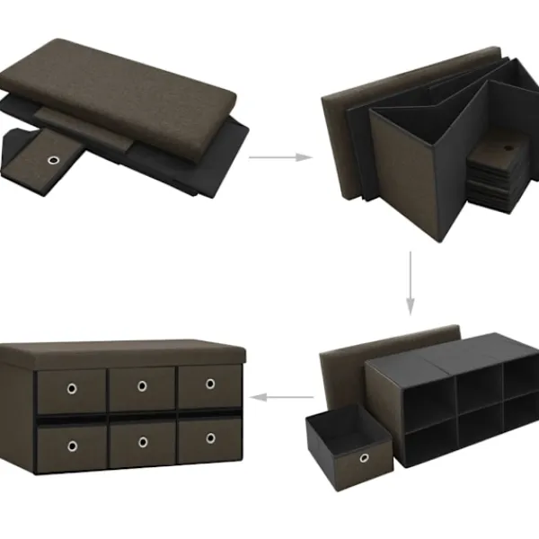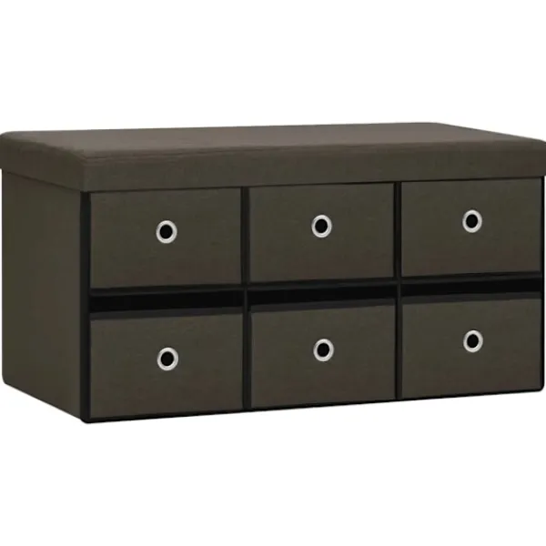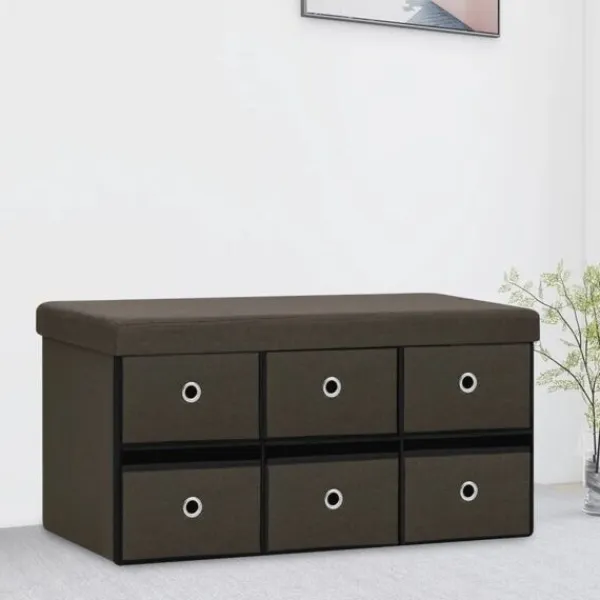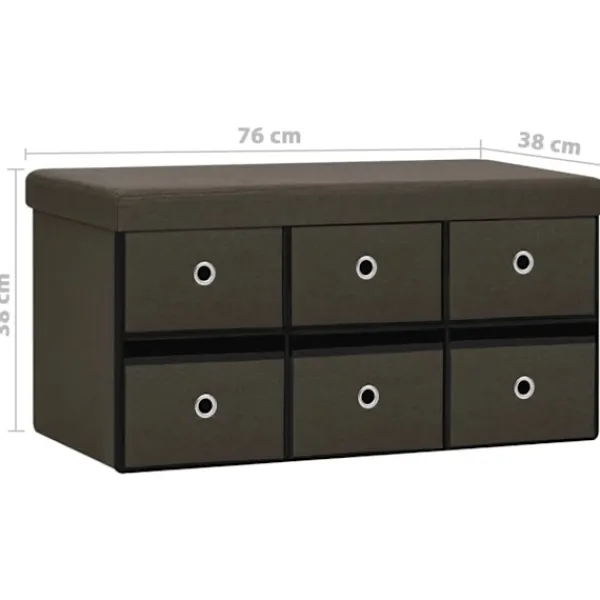 Denna mångsidiga och mjuka förvaringsbänk har en mysig design som passar alla inredningar. Den kan också användas som en extra sittplats i ditt hem. Förvaringsbänken är tillverkad i MDF och är klädd i konstlinne som är hållbart och stadigt. Förvaringsbänken är klädd med skum och är bekväm att sitta på. Den har 6 lådor med gott om förvaringsplats för att hålla olika föremål ur sikt men inom räckhåll. När den inte används kan den fällas ihop för att spara plats.