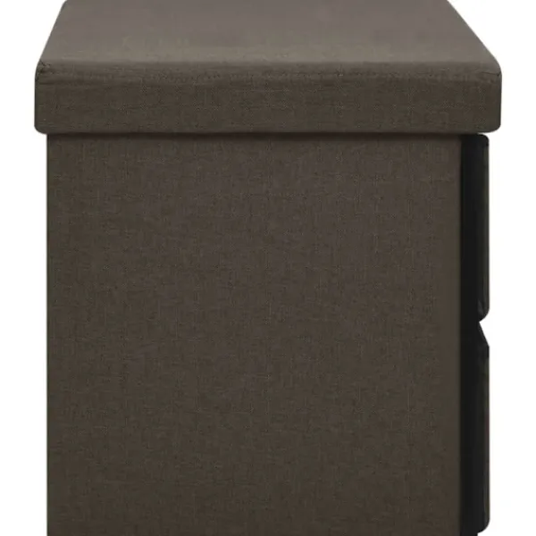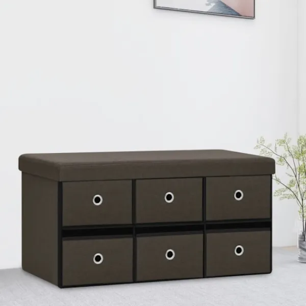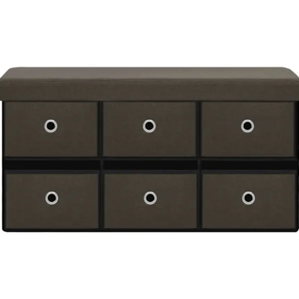 Förvaringsbänken är tillverkad i MDF och är klädd i konstlinne som är hållbart och stadigt. Förvaringsbänken är klädd med skum och är bekväm att sitta på. Den har 6 lådor med gott om förvaringsplats för att hålla olika föremål ur sikt men inom räckhåll. När den inte används kan den fällas ihop för att spara plats.