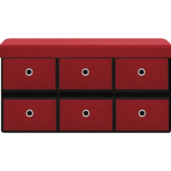 Förvaringsbänken är tillverkad i MDF och är klädd i konstlinne som är hållbart och stadigt. Förvaringsbänken är klädd med skum och är bekväm att sitta på. Den har 6 lådor med gott om förvaringsplats för att hålla olika föremål ur sikt men inom räckhåll. När den inte används kan den fällas ihop för att spara plats.
