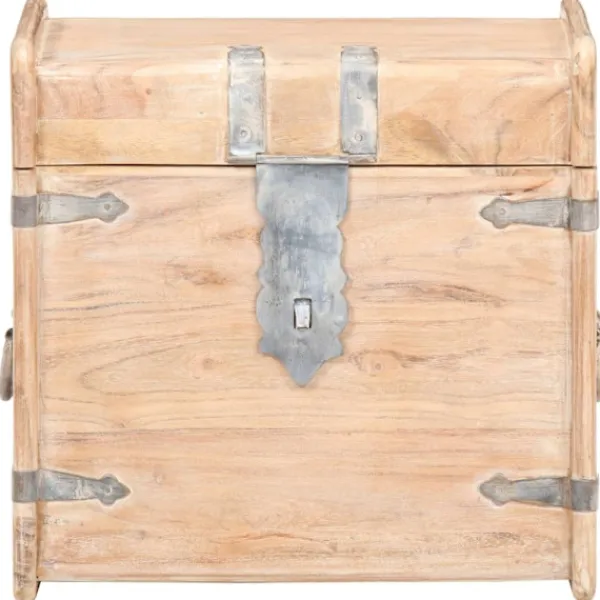 Kistan är tillverkad i massivt akaciaträ, vilket gör den stabil och hållbar. Den har ett lås på framsidan och två handtag på sidan som gör den enkel att lyfta. Förvaringslådan med platt ovansida kan även användas som sängbord. Hantverket och de vackra träådringarna gör varje möbel unik och något olik nästa.