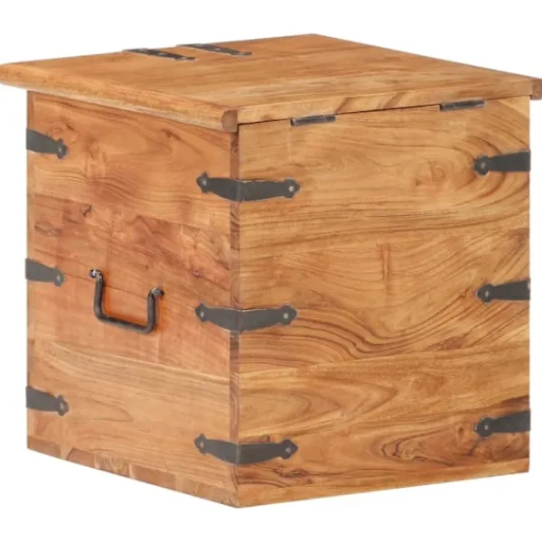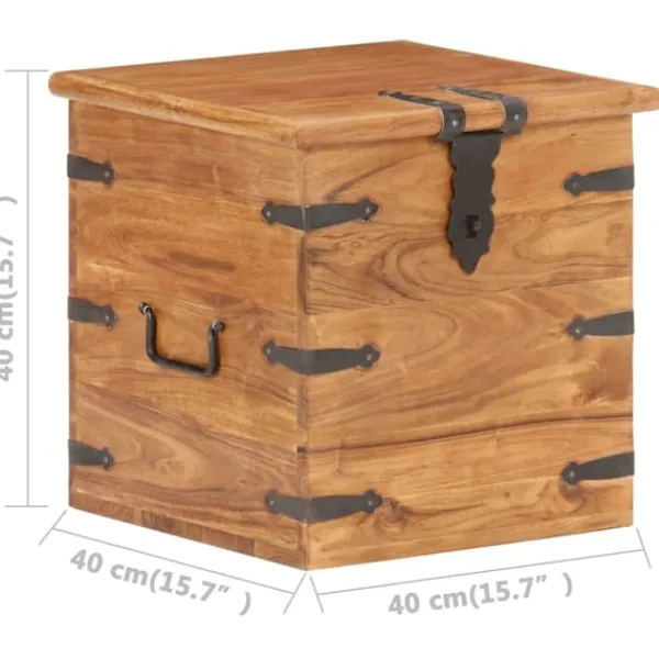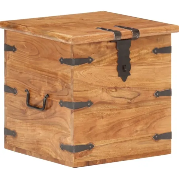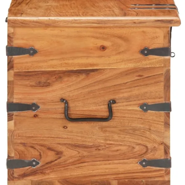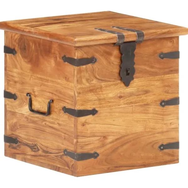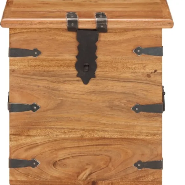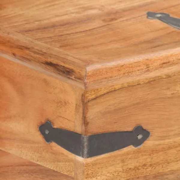Träkistan blir en enkel detalj i din heminredning och ger dig plats att förvara dina saker. Kistan är tillverkad i massivt akaciaträ, vilket gör den stabil och hållbar. Den har ett lås på framsidan och två handtag på sidan som gör den enkel att lyfta. Förvaringslådan med platt ovansida kan även användas som sängbord. Hantverket och de vackra träådringarna gör varje möbel unik och något olik nästa. OBS: Färger och ådringar varierar från möbel till möbel, vilket gör varje produkt unik. Leveransen är slumpartad. Leveransen är slumpmässig, vilket säkerställer varje produkts exklusivitet och individualitet.