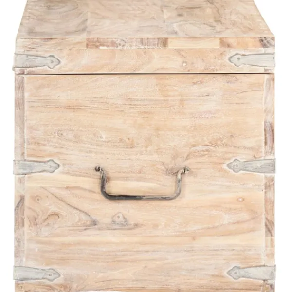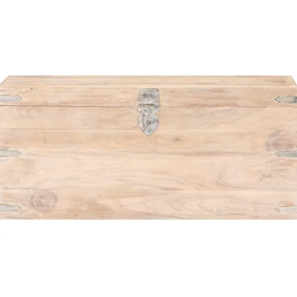 Kistan är tillverkad i massivt akaciaträ, vilket gör den stabil och hållbar. Den har ett lås på framsidan och två handtag på sidan som gör den enkel att lyfta. Förvaringslådan med platt ovansida kan även användas som hallbänk. Hantverket och de vackra träådringarna gör varje möbel unik och något olik nästa.