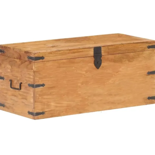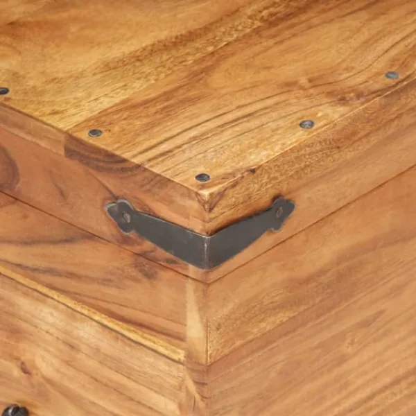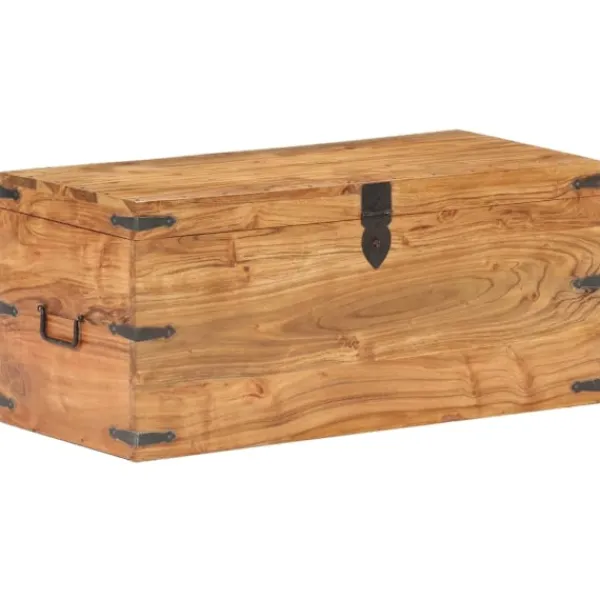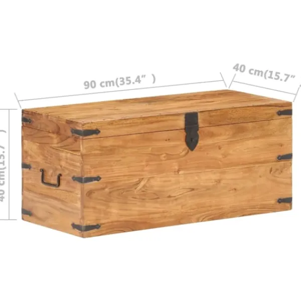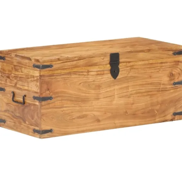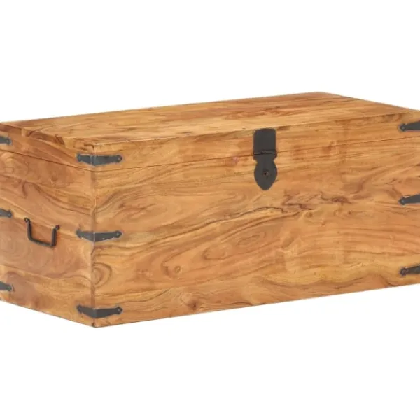 Träkistan blir en enkel detalj i din heminredning och ger dig plats att förvara prylar som kläder, tidningar, böcker, verktyg och annat. Kistan är tillverkad i massivt akaciaträ, vilket gör den stabil och hållbar. Den har ett lås på framsidan och två handtag på sidan som gör den enkel att lyfta. Förvaringslådan med platt ovansida kan även användas som hallbänk. Hantverket och de vackra träådringarna gör varje möbel unik och något olik nästa. OBS: Färger och ådringar varierar från möbel till möbel, vilket gör varje produkt unik. Leveransen är slumpartad. Leveransen är slumpmässig, vilket säkerställer varje produkts exklusivitet och individualitet.