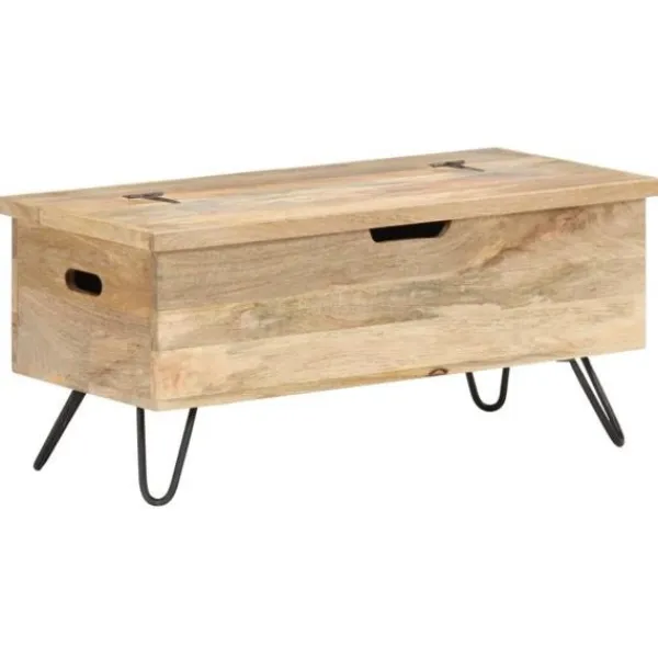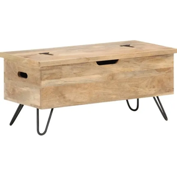 Denna smarta träkista blir en enkel detalj i din heminredning och ger dig plats att förvara dina saker såsom kläder, tidningar, böcker, leksaker, verktyg och annat. Kistan är tillverkad i massivt mangoträ, som är ett tropiskt lövträ vilket gör den stabil och hållbar. Den har ett lås på framsidan och två handtag på sidan som gör den enkel att lyfta. Stålbenen bidrar till extra stabilitet. Hantverket och de vackra träådringarna gör varje möbel unik och något olik nästa. OBS: Färger och ådringar varierar från möbel till möbel, vilket gör varje produkt unik. Leveransen är slumpartad. Leveransen är slumpmässig, vilket säkerställer varje produkts exklusivitet och individualitet.