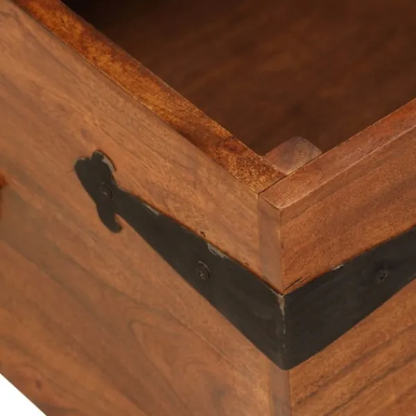 Soffbordet i trä med retro stil blir ett tidlöst tillägg i din vardagsrumsinredning. Bordet är tillverkat i massivt akacieträ med honungsfinish och är mycket hållbart och stabilt. Akaciaträ är ett tufft lövträ med vackra ådringar som kommer att hålla i många år. Det är också känt för sina rika fibrer. Ovansidan har dubbla lock som kan fällas upp för enkel förvaring. Trästrukturen ger soffbordet ett vintage utseende. Varje steg i tillverkningsprocessen görs med stor omsorg, vare sig det är polering, målning eller lackning. Monteringen är enkel. Viktigt: Färger och korn varierar från produkt till produkt vilket gör varje möbel unik och något annorlunda än de andra. Leveransen är slumpartad, vilket säkerställer varje produkts exklusivitet och individualitet.