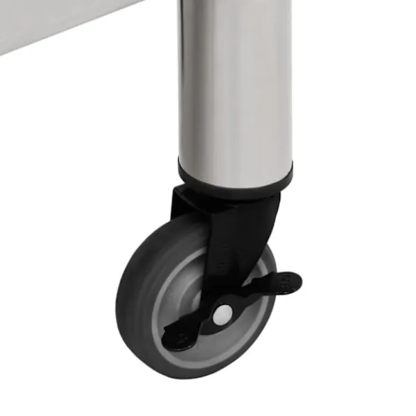 Detta arbetsbord är perfekt för matlagning och servering, i kök, på restauranger, skolor och andra kommersiella platser. Detta gastronomiska arbetsbord är tillverkat av rostfritt stål, och är mycket hållbart. Den släta ytan är korrosionsbeständig och lätt att rengöra. Den nedre skivan ger extra förvaringsutrymme. Arbetsbänken har 4 hjul, vilket gör att du lätt kan flytta runt den. Dessutom har 2 hjul bromsar för att hålla bordet på plats.