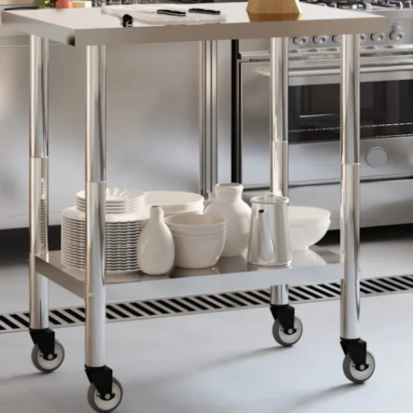 - Hållbart material: Arbetsbänken är tillverkad av slitstarkt rostfritt stål, vilket är motståndskraftigt mot korrosion och rost och säkerställer många års pålitlig användning. Den är också enkel att skrubba och rengöra.