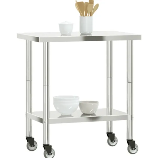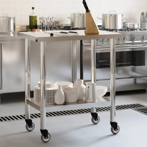 - Gott om arbetsplats: Bordet i rostfritt stål är utformat med en bottenhylla för anpassat lagringsutrymme, med gott om lagringsutrymme för din mikrovågsugn, köksredskap eller andra verktyg du kan behöva.