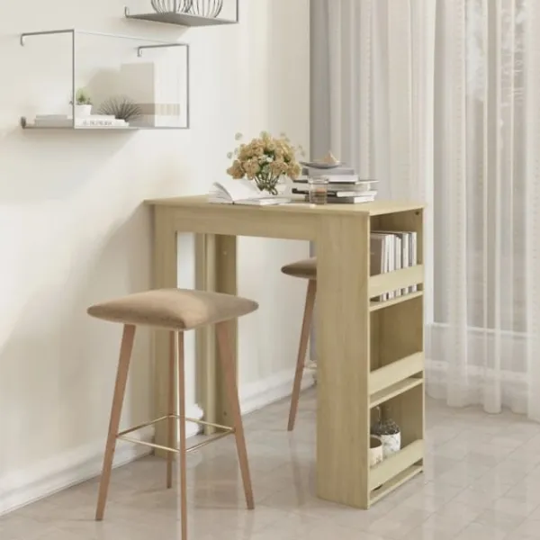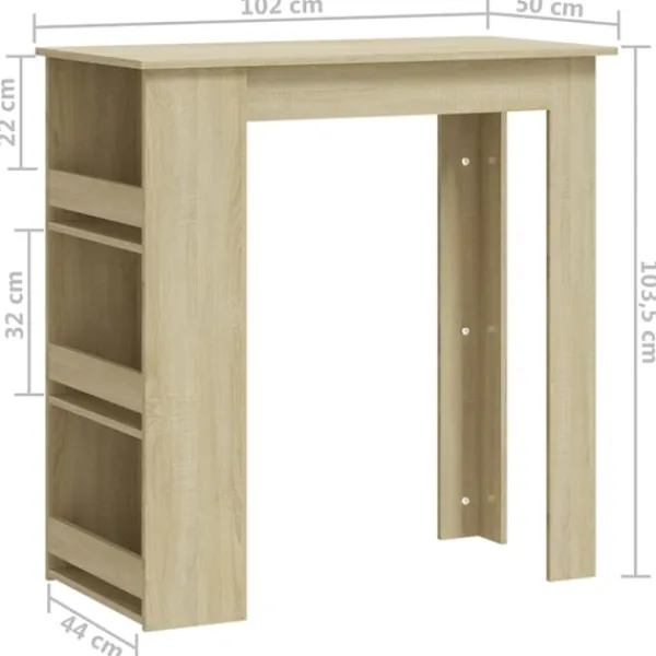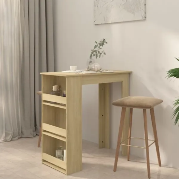 Detta barbord är det perfekta valet för små lägenheter eller begränsade utrymmen. Dess moderna design gör bordet till en elegant möbel i ditt kök eller matplats. Barbordet har 3 förvaringshyllor med gott om plats att ställa vinflaskor eller andra saker. Tack vare konstruktionen är det hållbart, stadigt och lätt att rengöra.