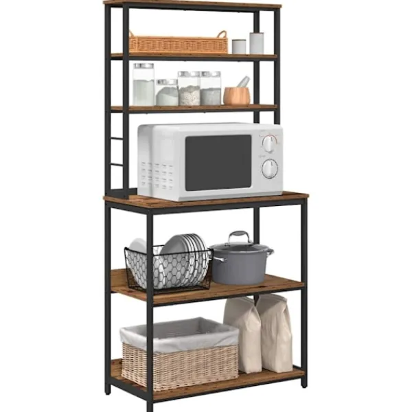 - Ingår komponenter: Hyllan har flera brädhyllor som stöds av stabila stålben, vilket ger bra förvaring. Nivellerare gör att den står stadigt även på ojämna ytor. Denna genomtänkta design rymmer allt från köksgrejer till skafferivaror, vilket gör den ovärderlig för varje förvaringsbehov.