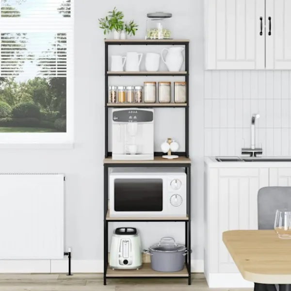 - Ingår komponenter: Hyllan har flera brädhyllor som stöds av stabila stålben, vilket ger bra förvaring. Nivellerare gör att den står stadigt även på ojämna ytor. Denna genomtänkta design rymmer allt från köksgrejer till skafferivaror, vilket gör den ovärderlig för varje förvaringsbehov.