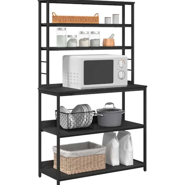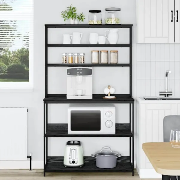 - Ingår komponenter: Hyllan har flera brädhyllor som stöds av stabila stålben, vilket ger bra förvaring. Nivellerare gör att den står stadigt även på ojämna ytor. Denna genomtänkta design rymmer allt från köksgrejer till skafferivaror, vilket gör den ovärderlig för varje förvaringsbehov.