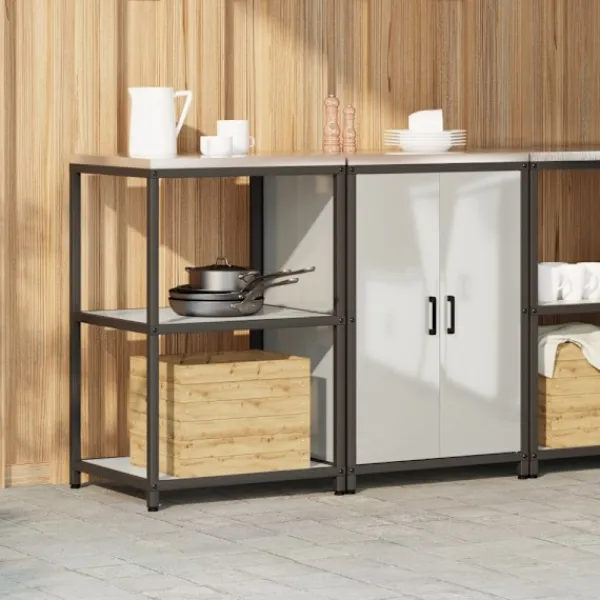 - Hållbart stålmaterial Det här köksförvaringssetet är gjort av stål, vilket ger starkt stöd och lång hållbarhet. Den snygga stålkonstruktionen ser inte bara modern ut utan är också lätt att rengöra och håller bra mot slitage.