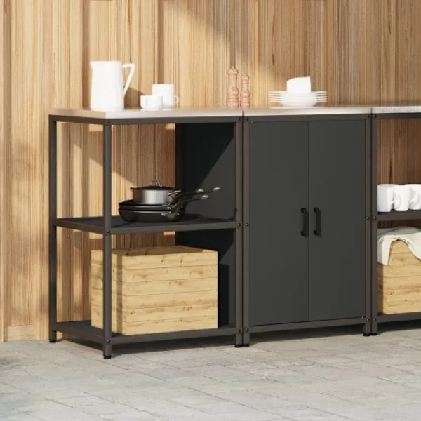 - Hållbart stålmaterial Det här köksförvaringssetet är gjort av stål, vilket ger starkt stöd och lång hållbarhet. Den snygga stålkonstruktionen ser inte bara modern ut utan är också lätt att rengöra och håller bra mot slitage.