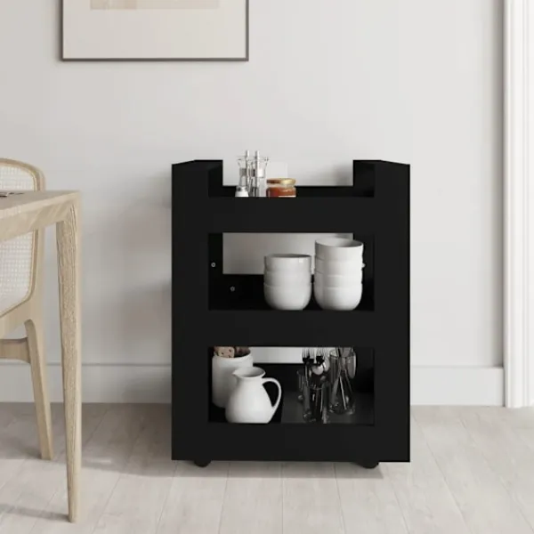 Med denna rymliga köksvagn kan du enkelt ordna saker för att göra ditt kök städat på ett ögonblick. Hållbart material: Det konstruerade träet är av exceptionell kvalitet med slät yta och är också starkt, stabilt och fuktbeständigt. Köksvagnen är tillverkad av konstruerat trä och är lätt att rengöra.Gott om förvaringsutrymme: Denna grönsaksvagn har 3 hyllor för att hålla skålar och tallrikar för enkel åtkomst.Praktiska hjul: Vagnen är utformad med 4 hjul, vilket gör det enkelt för dig att flytta och använda denna förvaringsvagn var du vill. Observera:Varje produkt levereras med en monteringsmanual i lådan för enkel montering.