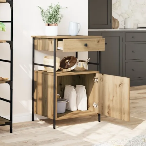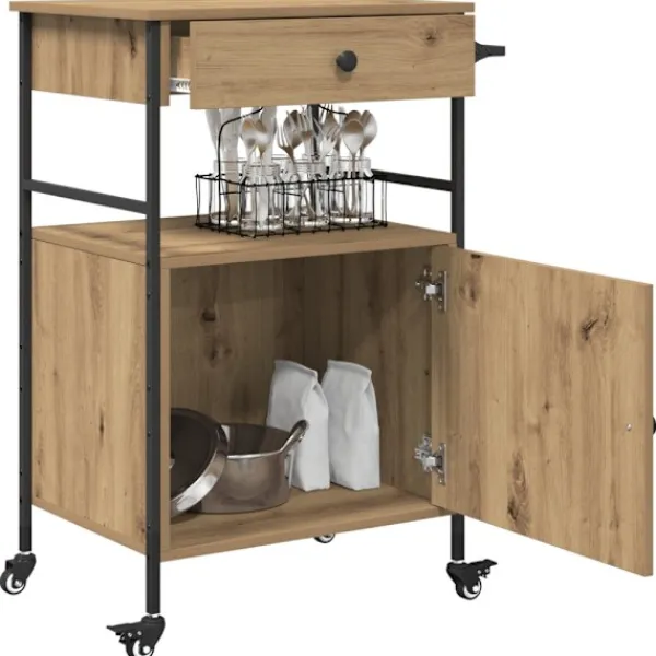 - Premium konstruerat trä: Vagnen är tillverkad av konstruerat trä som ger en stabil yta för dina grejer. Det här materialet är hållbart och klarar vridningar, perfekt för köket där du behöver något pålitligt.