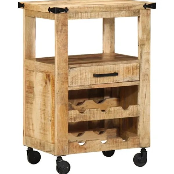- Material: Denna köksvagn är tillverkad av massivt mangoträ, vilket gör att den är både hållbar och snygg. Den tuffa ramen ger stabilitet, och de varma trätonerna ger elegans.