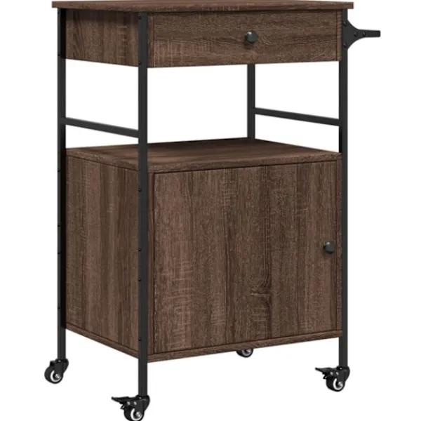 - Gott om förvaringsutrymme: Denna grönsaksvagn har gott om förvaringsutrymme för att hålla mat, skålar, tallrikar, recept och andra köksredskap inom räckhåll. Handdukshyllan på sidan är lämplig för att förvara dina handdukar nära till hands.