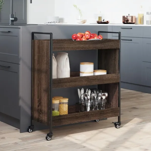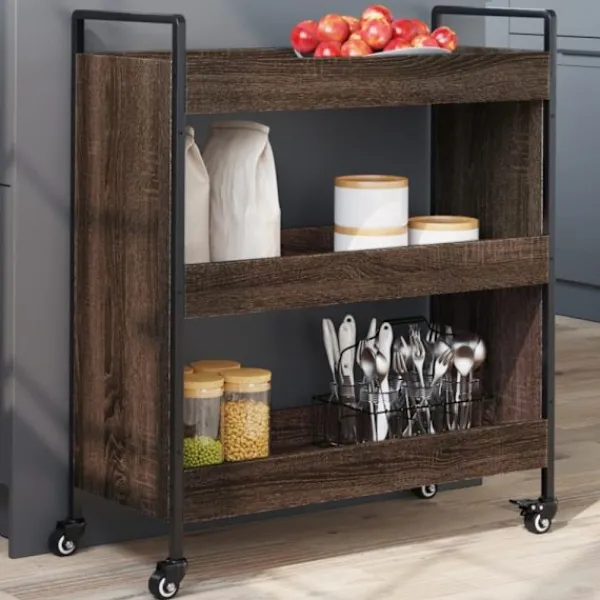 - Flexibel installation: Denna köksförvaringsvagn kan användas på två sätt. Du kan placera den på golvet med justerbara fötter för stabilitet på ojämna ytor eller fästa hjulen för enkel rörelse.